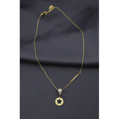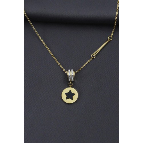 Çelik Gold Renkli Zirkon Taşlı Siyah Yıldız Tasarımlı Kadın Kolye