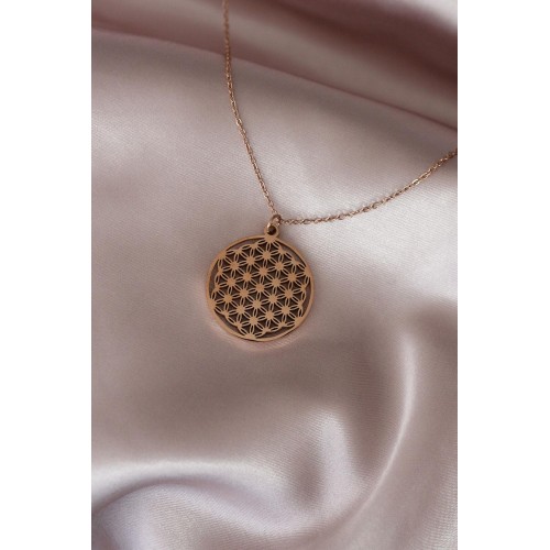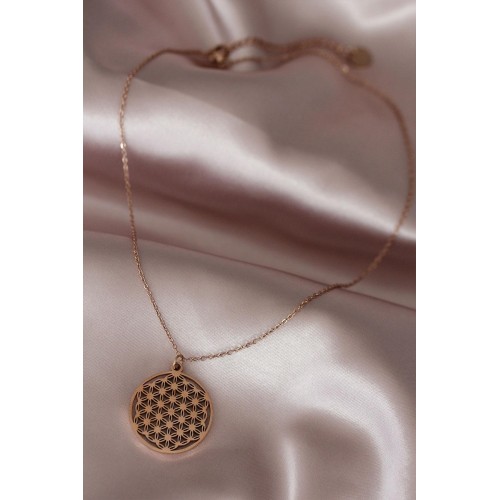 Çelik Rose Renk Yaşam Çiçeği Tasarımlı Kadın Kolye