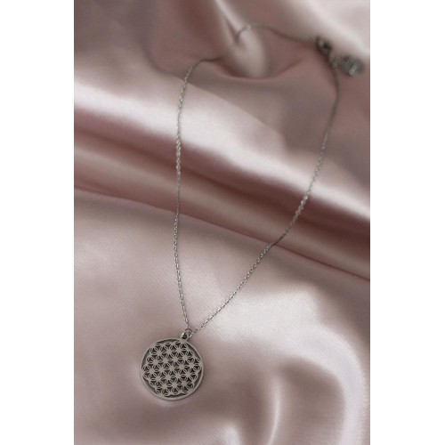 Çelik Silver Renk Yaşam Çiçeği Tasarımlı Kadın Kolye