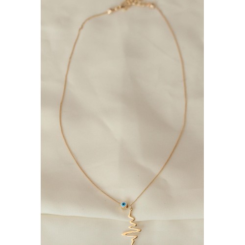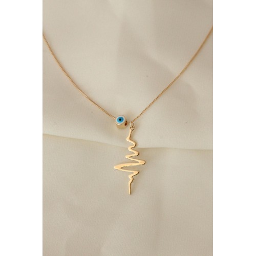 Nazar Boncuk Detaylı Kalp Ritmi Model Gold Renk Metal Zincirli Kolye