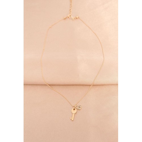 Gold Metal Minimal Taşlı Anahtar Kilit Kolye