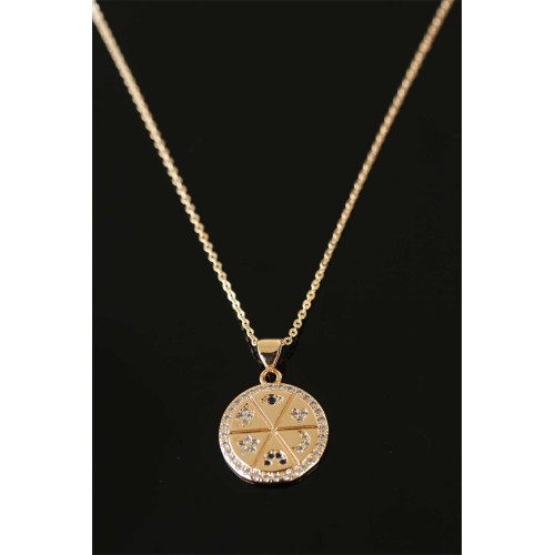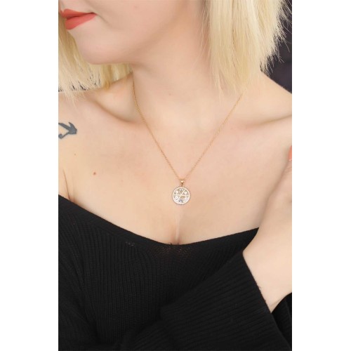 Gold Gözlü Metal Zincir Kadın Çelik Kolye