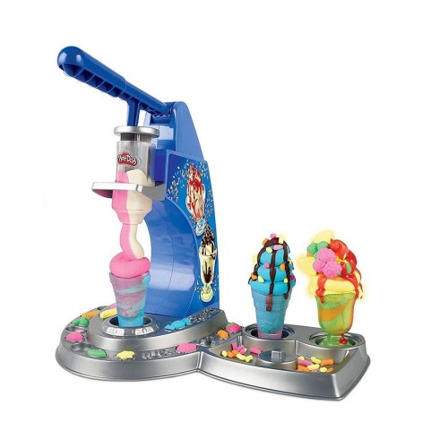 Bir miktar klasik Play Doh oyun hamurunu makinenin içine koyun ve kaba ya da külaha renkli dondurmalar sıkmak için kola basın.