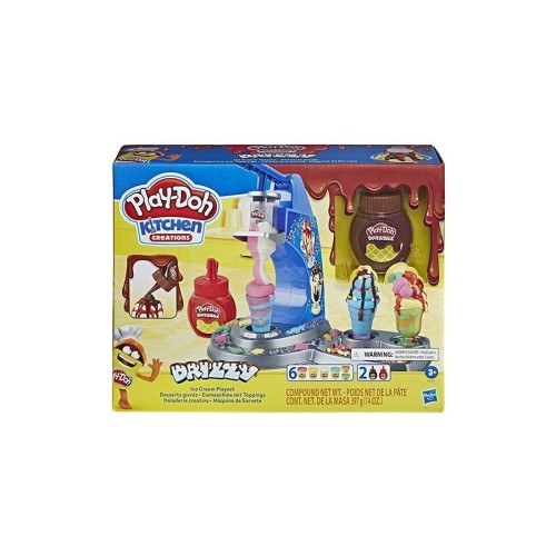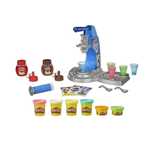 Play Doh Renkli Dondurma Dükkanım bir ilk olarak, klasik Play Doh oyun hamurunun üzerine sıkıldığında sos gibi görünen Play Doh Drizzle oyun hamurunu sunuyor.